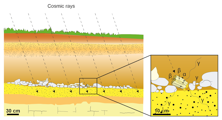 Cuando el diente es enterrado, el esmalte dental comienza a absorber radiación natural. Esta radiación procede de los rayos cósmicos y de los radioelementos presentes en el sedimento y en los propios tejidos dentales.