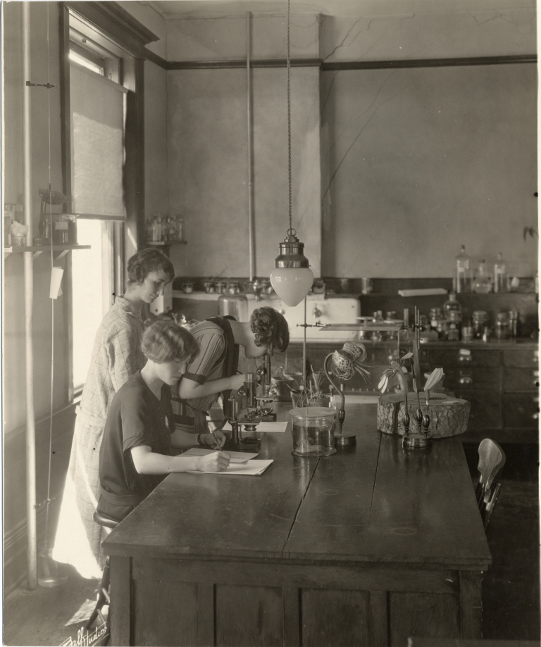 Helen Gilkey con estudiantes en el laboratorio de botánica. Wikimedia Commons.