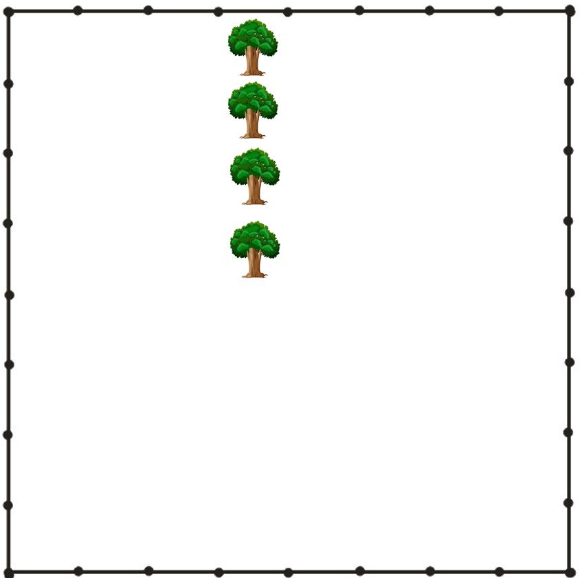 Una madre deja a sus cuatro hijas un campo cuadrado conteniendo cuatro robles [ver debajo]. Pero les impone una condición para conseguir este legado: deben dividir el campo en cuatro partes con la misma forma y de igual tamaño, de manera que cada trozo de tierra contenga uno de los árboles.