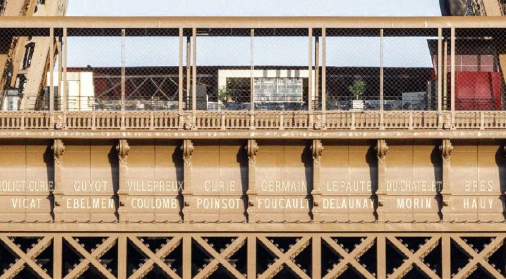 Como comentaba Galeano en Mudanza de nombre, la Torre Eiffel tiene grabados en los pretiles de la primera línea de balcones 72 nombres de científicos e ingenieros franceses destacados por sus contribuciones. Fue Gustave Eiffel quien eligió los nombres de esos eruditos –todos varones–: cada fachada de la torre (Trocadero, Escuela Militar, Grenelle y París) contiene 18 apellidos.