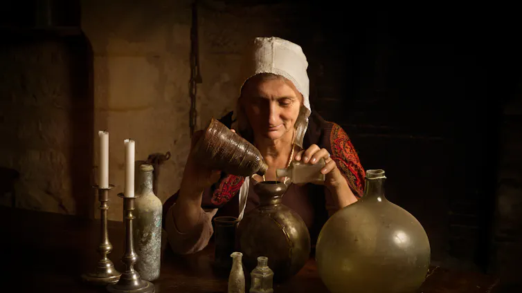 Recreación de una mujer medieval preparando ungüentos. Anneka/Shutterstock.